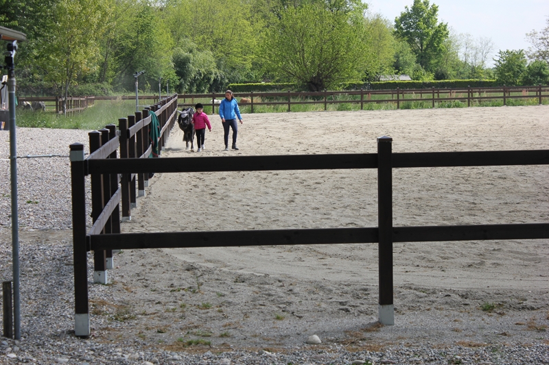 Si insegnano le basi per la gestione del pony/cavallo sia dentro che fuori dal campo.